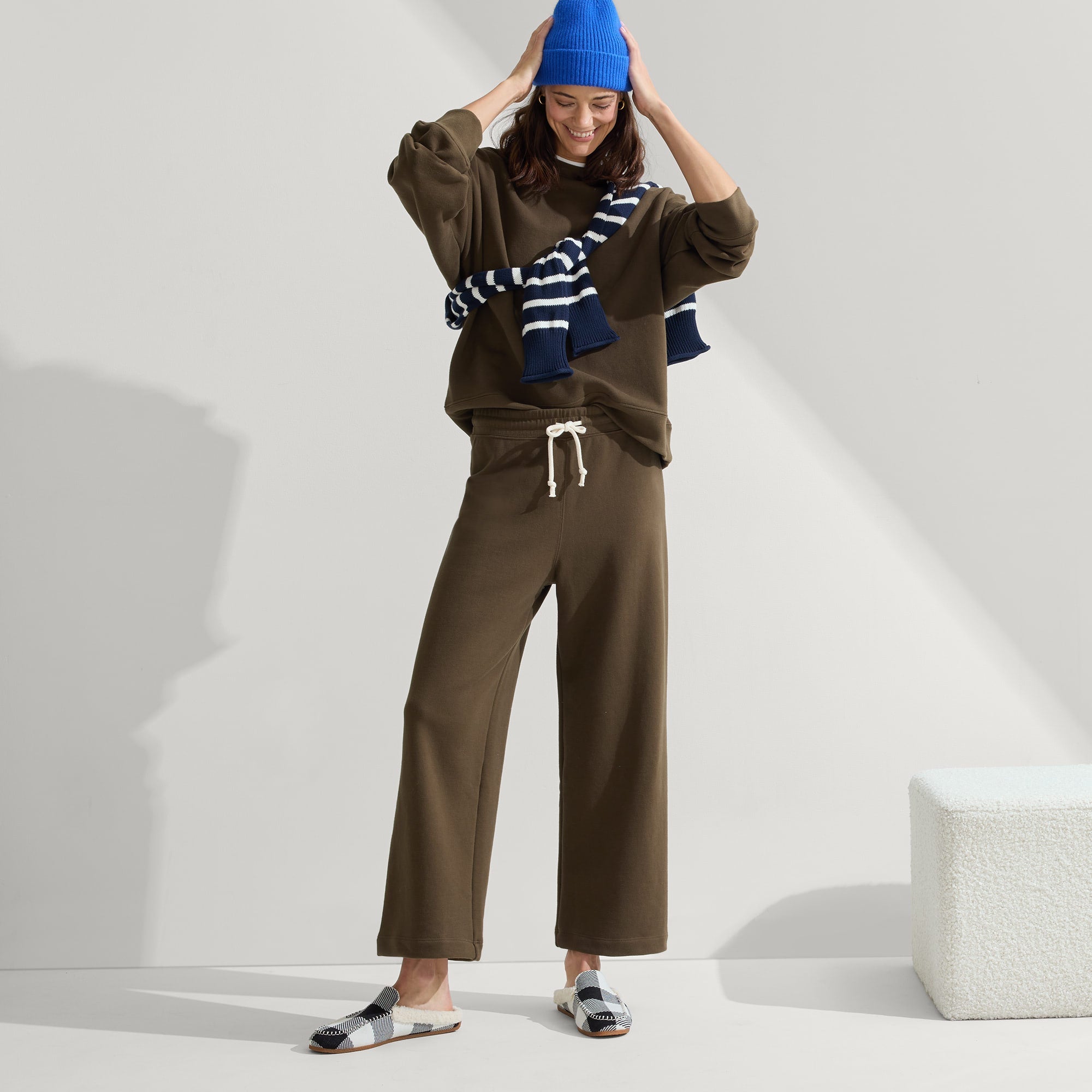 • Fluffy vegan shearling lining and insoles in ivory for softness and warmth.